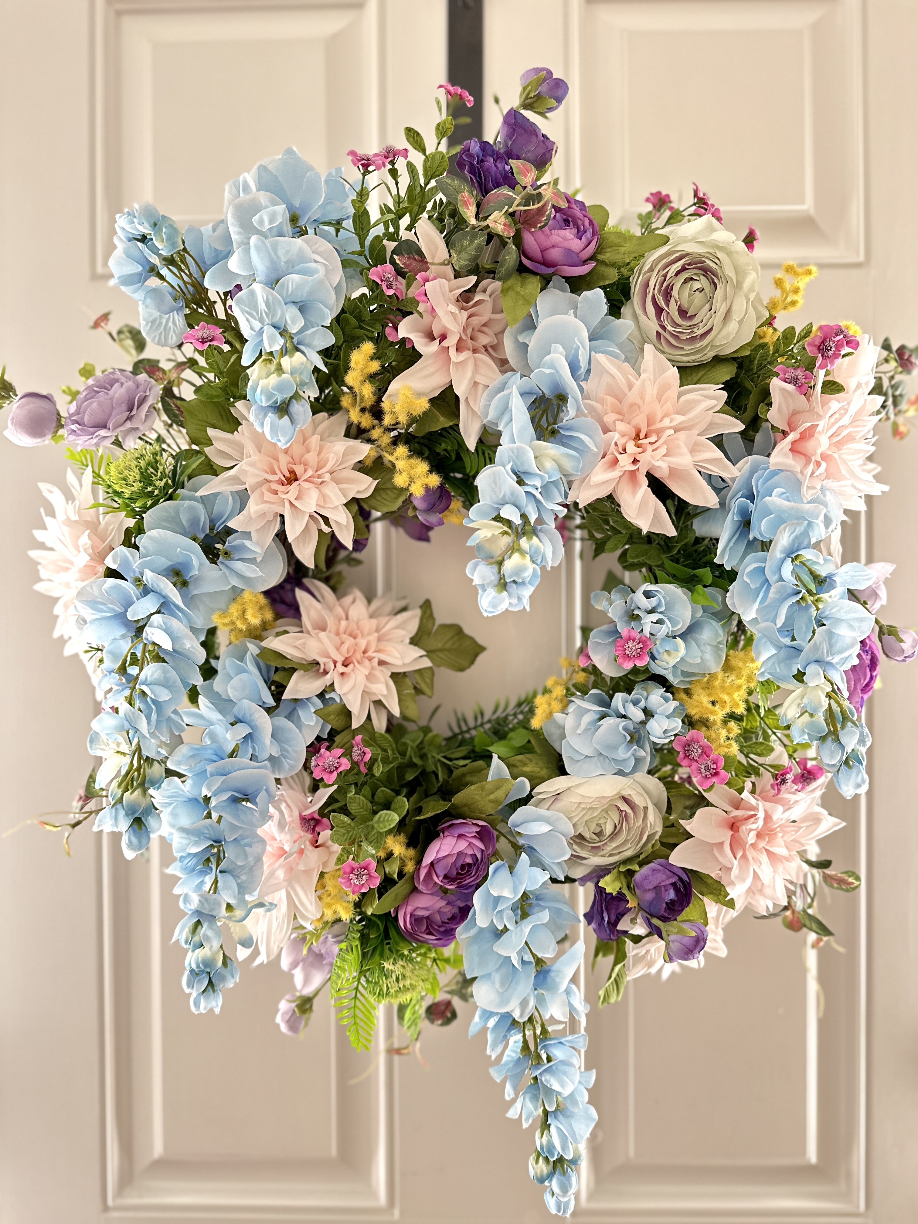 Your wreath will be designed on a 14" wreath base, with the final product measures approximately 20"-22"